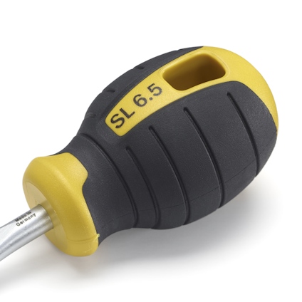Spårskruvmejsel med kort klinga och kompakt handtag för bättre åtkomst i trånga utrymmen. Utvecklad för professionellt bruk tillsammans med hantverkare. Läs mer