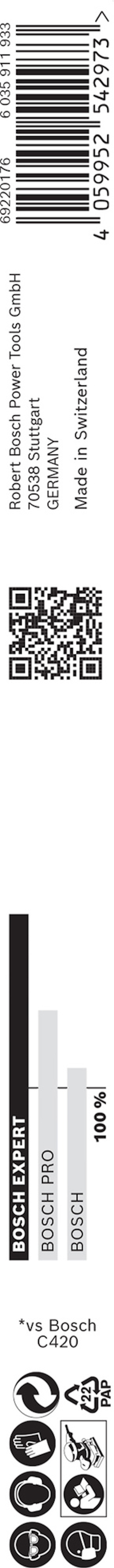 EXPERT C470 slippapper för handslipning 230 x 280 mm, G 80 Upp till 2 gånger snabbare än Bosch C420-slippapper - Slipning av stora ytor är ett tidskrävande jobb: Många slippapper täpps tyvärr snabbt igen av damm och förlorar sin slipförmåga, vilket gör en lång process ännu längre. Genom att kombinera skarpa korn med teknik som stoppar igensättning bibehåller EXPERT C470 Slippapper sina exceptionella egenskaper under hela livslängden. Det betyder att du kan arbeta snabbare och längre utan att kompromissa med ytfinishen. För att uppnå bästa möjliga slipyta anpassar vår aggressiva produktionsmetod för kornjustering kornen så att den vassaste sidan alltid hamnar uppåt. Sedan täcker vi dem med stark bindning och en beläggning som motverkar igentäppning. Tillsammans med optimal korntäthet säkerställer detta maximal hastighet och minimal igensättning. Ägna mindre tid åt slipning – eller få mer gjort – med Bosch EXPERT C470 Slippapper. Kläm fast den.