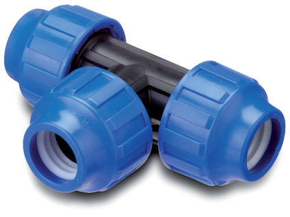 T-rörskoppling. Rör x rör x rör. Koppling för polyetenrör PEM PN10. Vid montering av tunnväggiga rör PEM PN 6,3 eller sugledning till pumpautomater skall stödhylsa användas. Läs mer