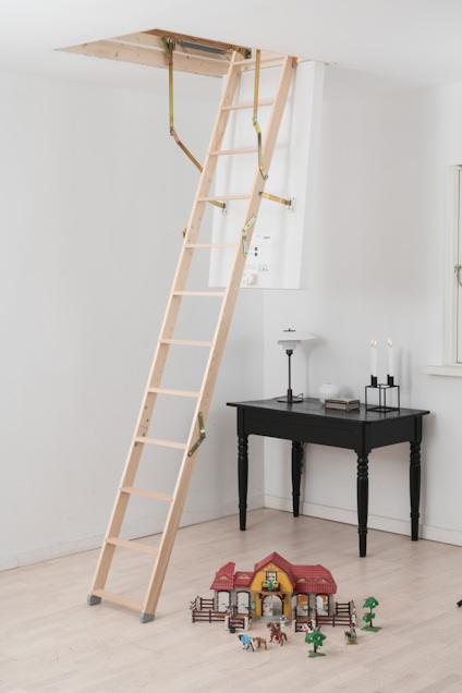 Lätt och snabbt montage då delarna snäpps ihop vid installation i taket. Installation kan utföras av en person då karm, lucka, och stege hanteras var för sig. Lägre vikt - 25% jämfört med traditionell vindstrappa - ingen av delarna väger över 8 kilo.