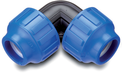 Vinkelkoppling. Rör x rör. Koppling för polyetenrör PEM PN10. Vid montering av tunnväggiga rör PEM PN 6,3 eller sugledning till pumpautomater skall stödhylsa användas. Läs mer